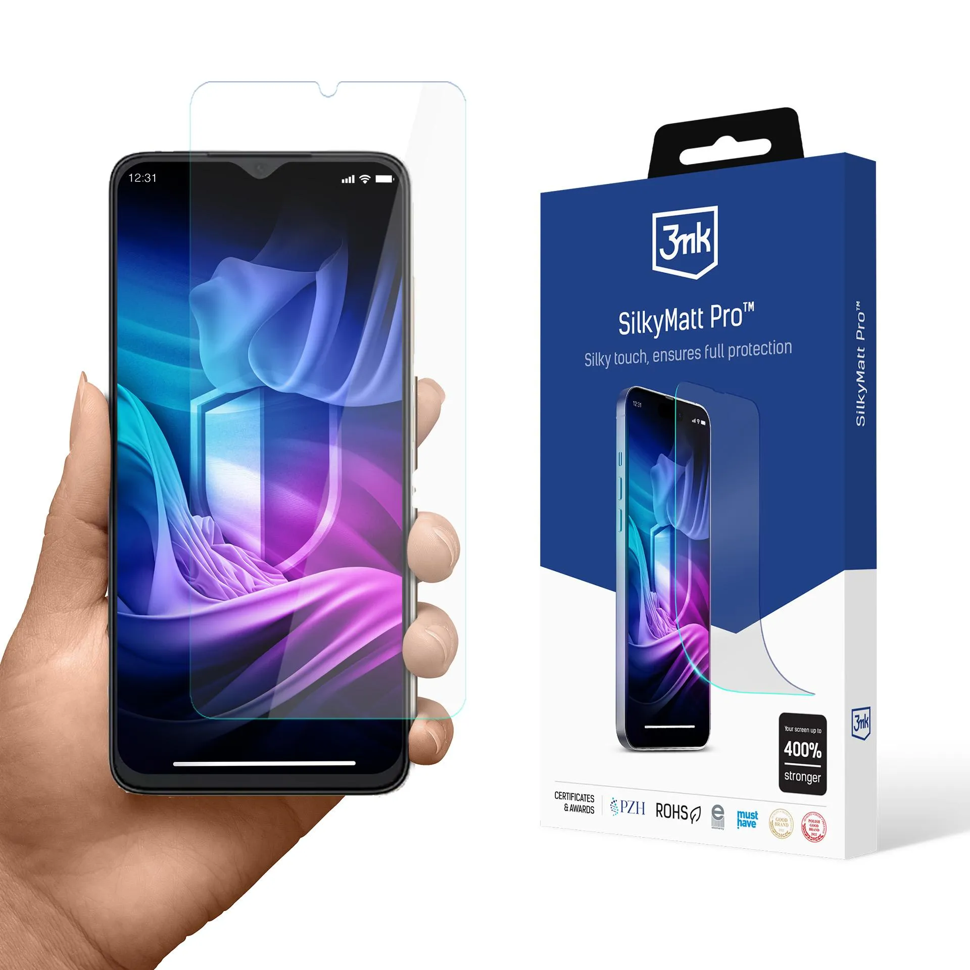 Shock-resistant Use your phone without limits and stress! With SilkyMatt Pro, your smartphone's display becomes more resistant to scratches and cracks by as much as... 400%! This is possible due to the multi-layer structure, which includes a shock-absorbing base proven reliable in tests. When your phone falls on a hard surface, takes a dip in the sand, or is in the same pocket as keys, SilkyMatt Pro minimizes the risk of screen damage.