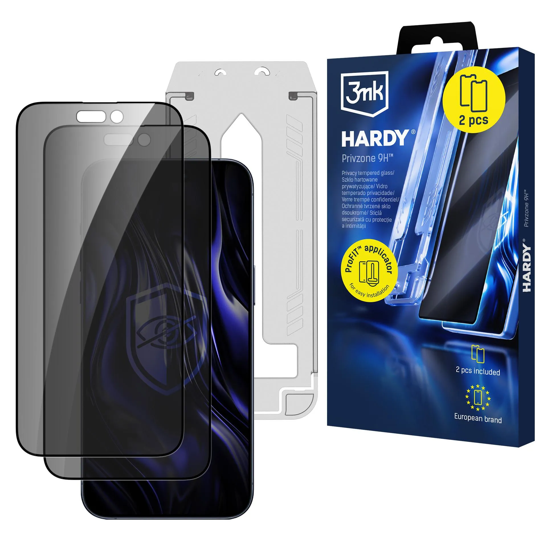 CountriesTempered privacy glass protects the screen from side glances starting at a 28° angle. It includes the ProFIT™ applicator, which enables quick and precise installation without bubbles or dust. The set includes 2 pieces – one for immediate use and the other as a spare.