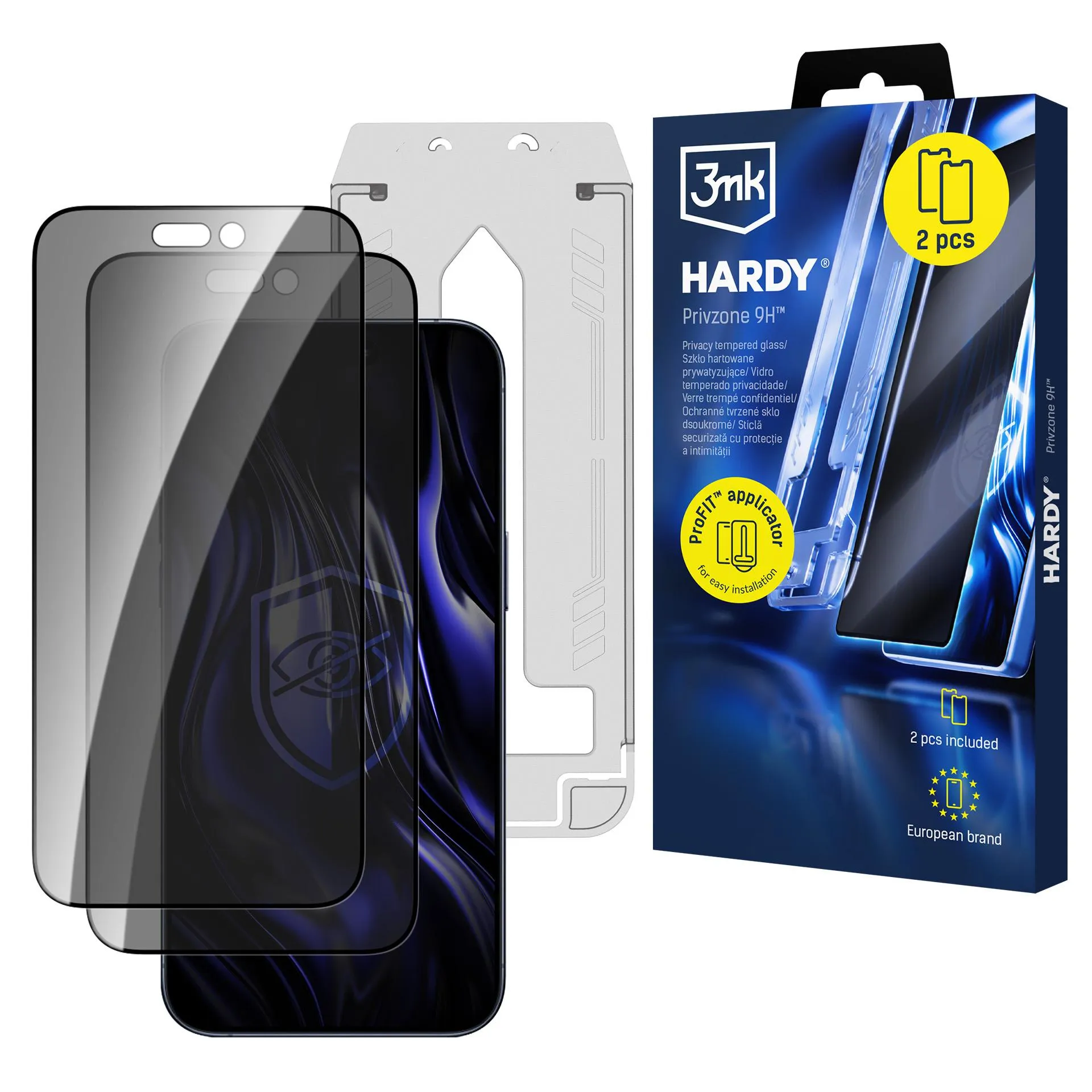 CountriesTempered privacy glass protects the screen from side glances starting at a 28° angle. It includes the ProFIT™ applicator, which enables quick and precise installation without bubbles or dust. The set includes 2 pieces – one for immediate use and the other as a spare.