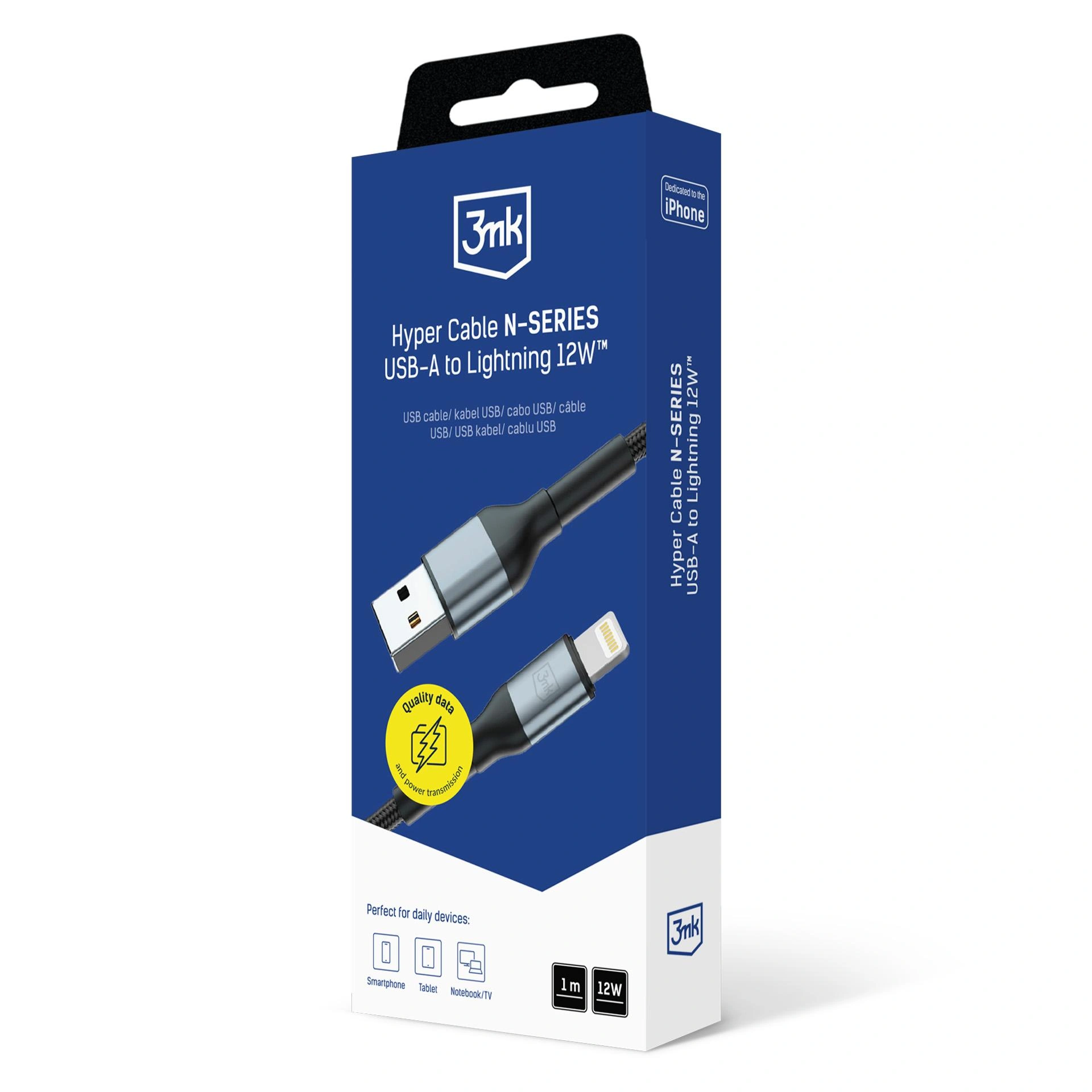 CountriesReliable USB-A to Lightning cable created for demanding iPhone users. Optimal 12W charging and dependable data synchronisation, combined with a durable construction, make it the perfect solution for everyday use. Its one-metre design in classic black, with a premium nylon braid and aluminium connectors, ensures comfort of use and an elegant look.