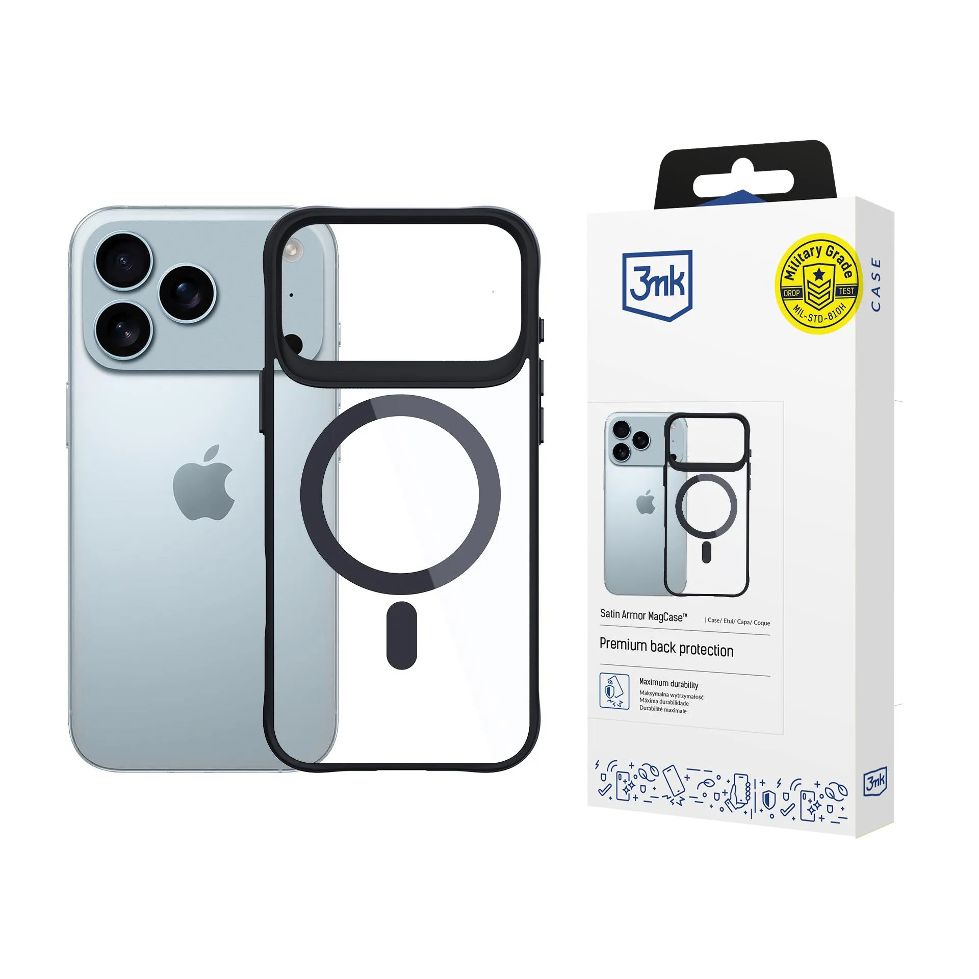 Satin Armor MagCase™ gives you confidence and peace of mind that if your smartphone falls onto a hard surface, it will be perfectly protected against damage. The case’s reliability in everyday and extreme risk situations is confirmed by the Military Grade certificate, awarded after passing rigorous, independent drop tests. A flagship device protected by Satin Armor MagCase™ lands softly and safely – even on concrete, tiles, or stones. The product’s maximum durability results, among other things, from its construction based on a rigid back made of polycarbonate (PC).