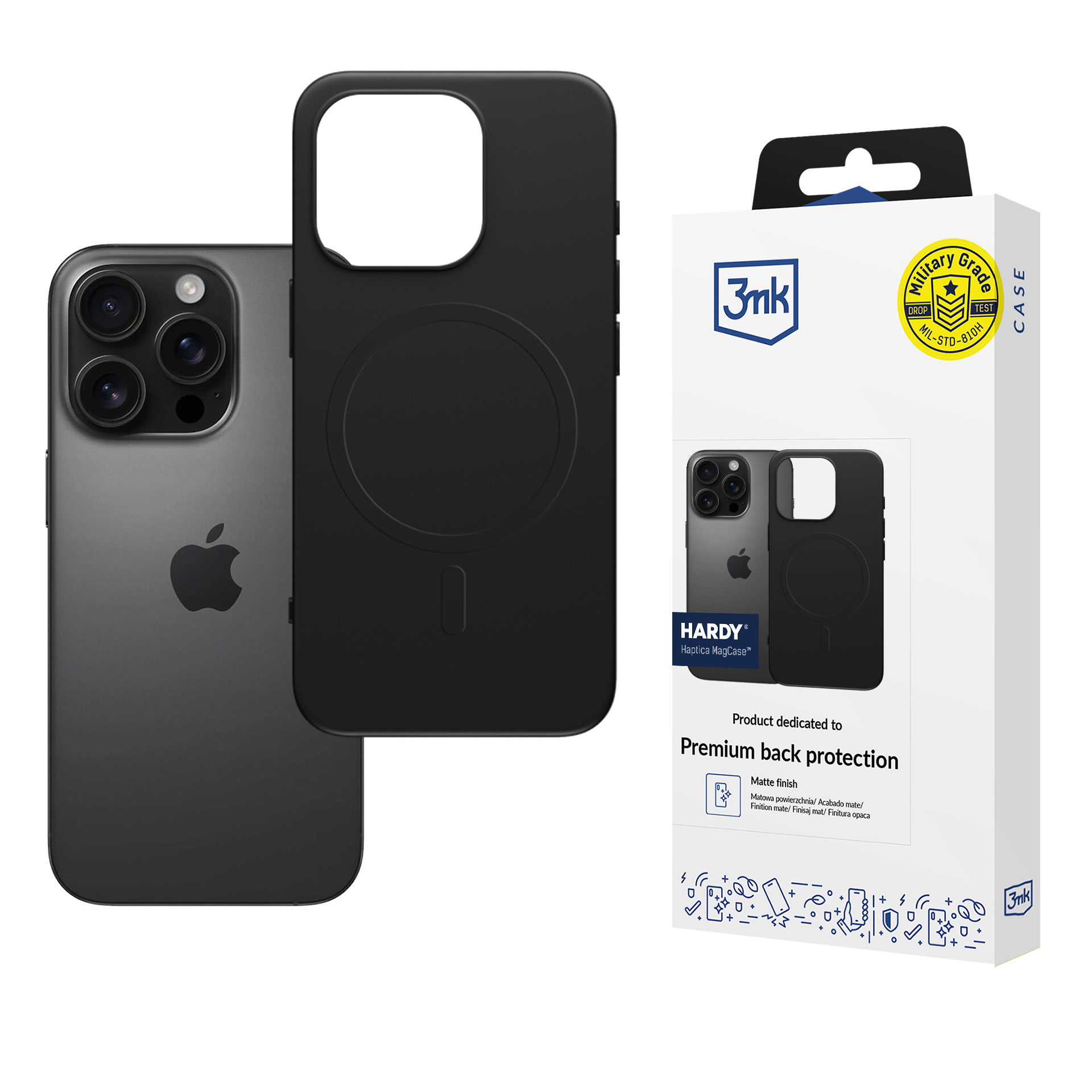 CountriesMilitary Grade certified case - protection against drops and impacts. The matte surface ensures a secure grip. MagSafe allows for wireless charging and accessory attachment. EasyClick™ buttons for comfortable operation. Maximum protection, minimal size.