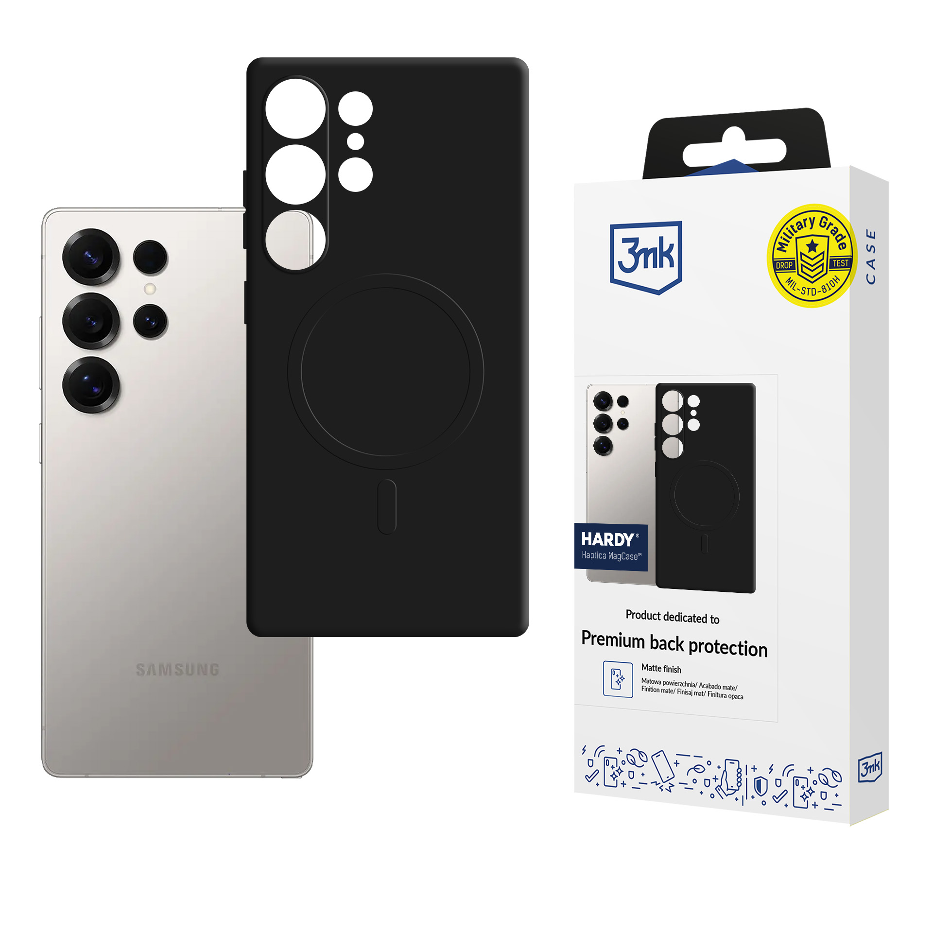 CountriesMilitary Grade certified case - protection against drops and impacts. The matte surface ensures a secure grip. MagSafe allows for wireless charging and accessory attachment. EasyClick™ buttons for comfortable operation. Maximum protection, minimal size.