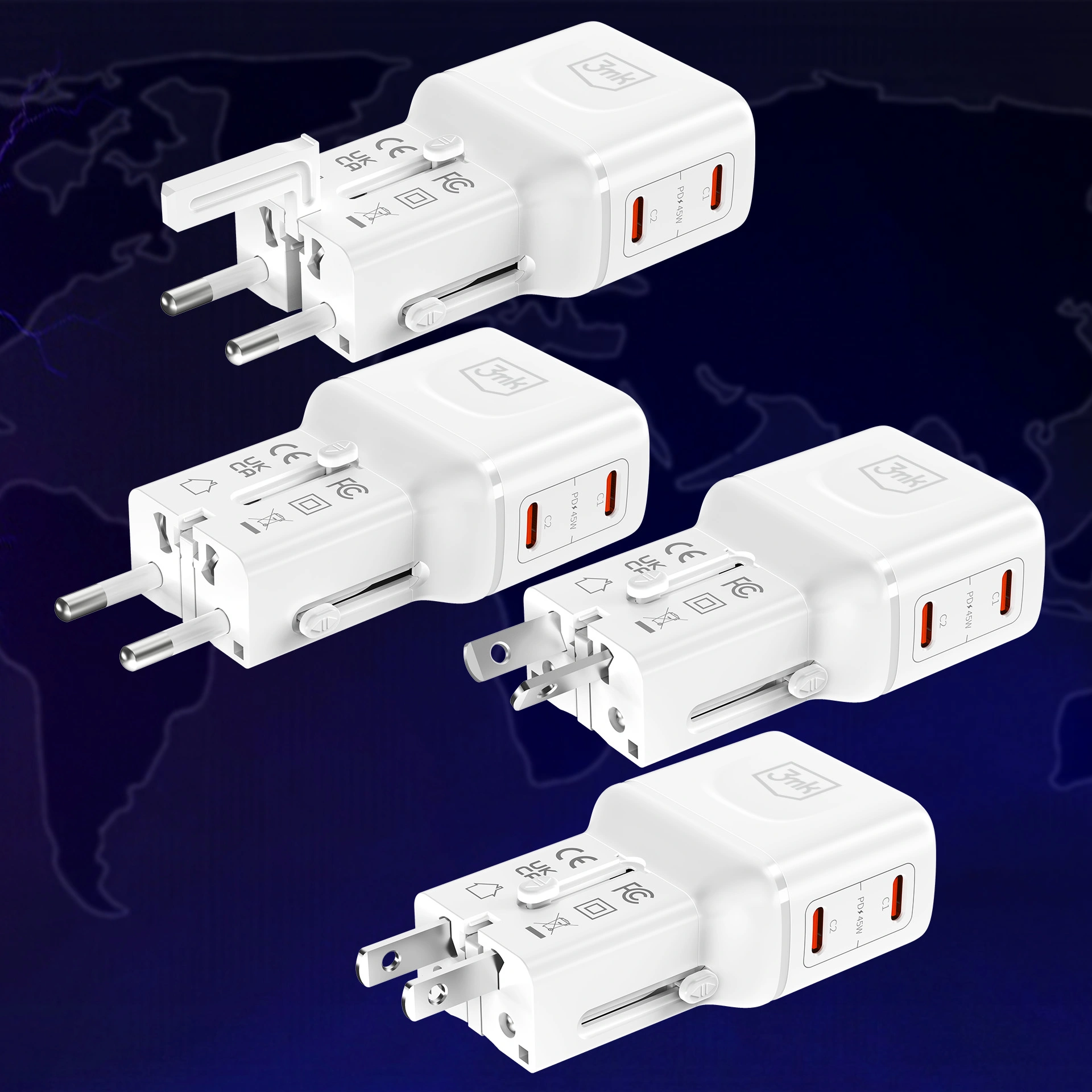 CountriesSmart travel adapter with GaN charger. Automatically recognizes devices, distributes power between 2 USB-C ports, supports 210+ countries and 12 fast charging protocols. Compact, safe and ready for travel – one device instead of three.