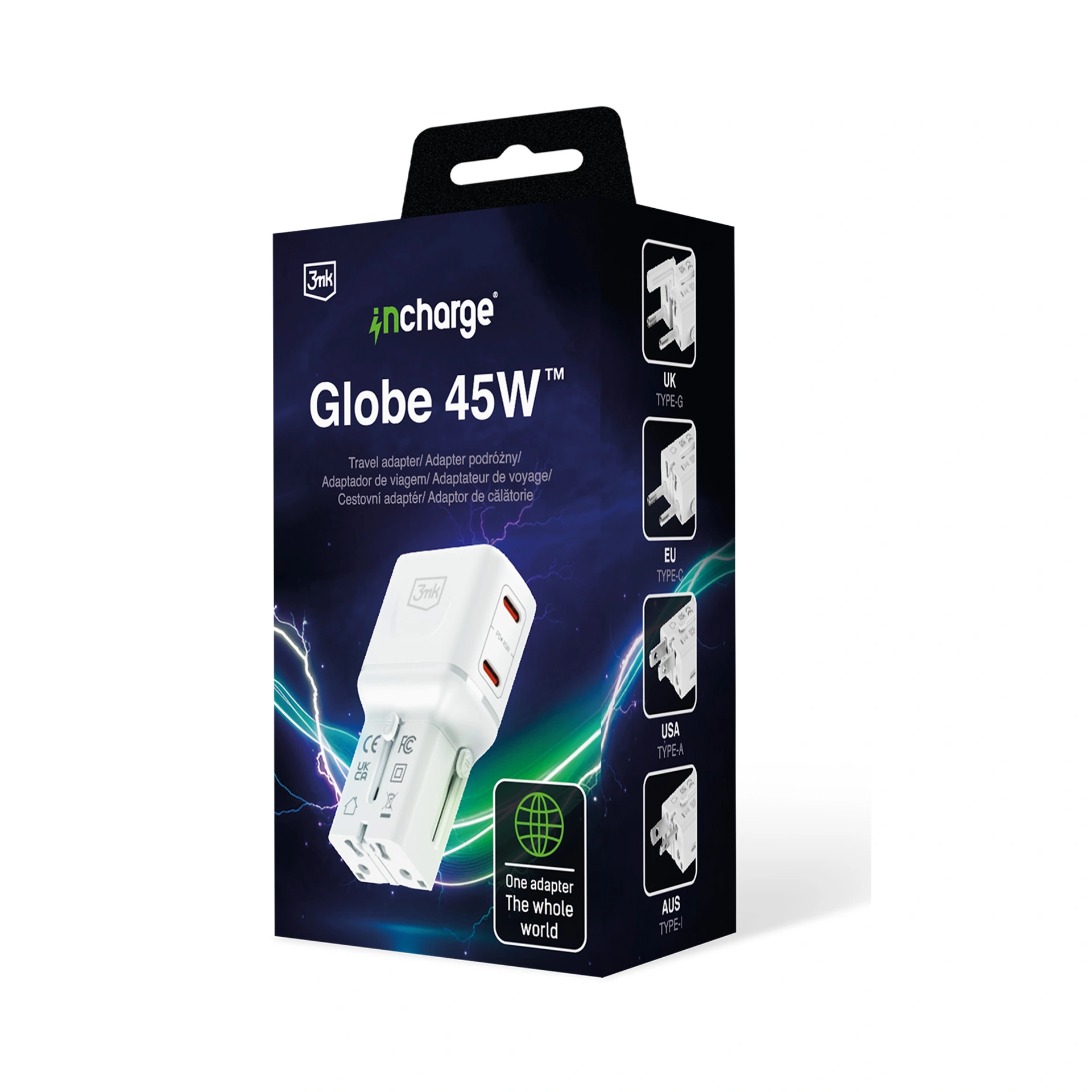USA, UK, AUS, EU sockets, support for over 200 countries